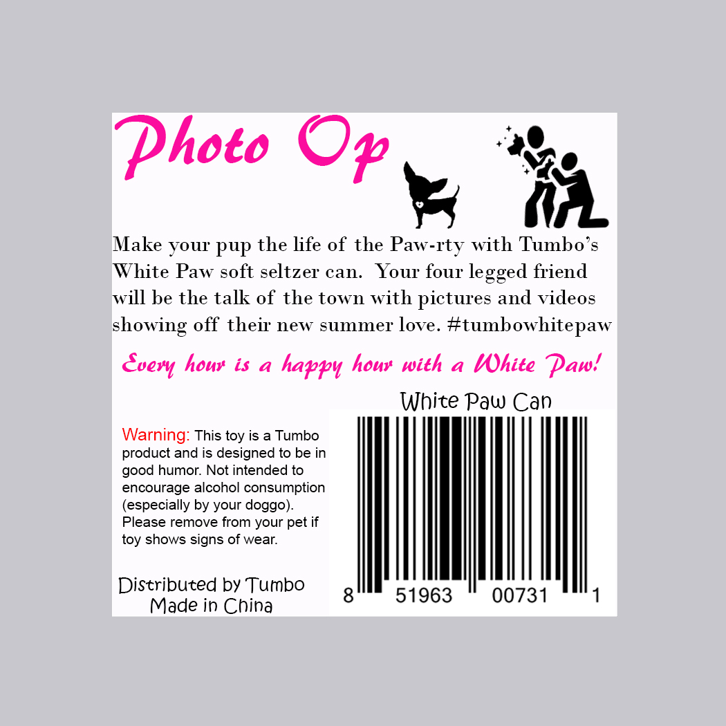 Make your pup the life of the Paw-rty with Tumbo’s White Paw Soft Seltzer Can. Your four legged friend will be the talk of the town with pictures and videos showing off their new summer love.