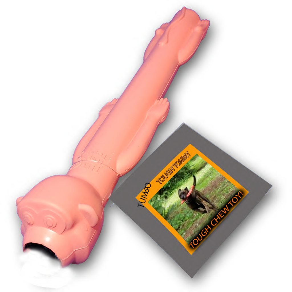 Tough Tommy is a heavy duty rubber dog toy that will withstand chewing very well. Great for tossing around the yard. * This does not have the launch bands inside like the Torpedo Tommy. Orange Monkey-shaped tough rubber dog toy. Durable rubber withstands chewing Non floating Note: no dog toy is indestructible: Always supervise your…